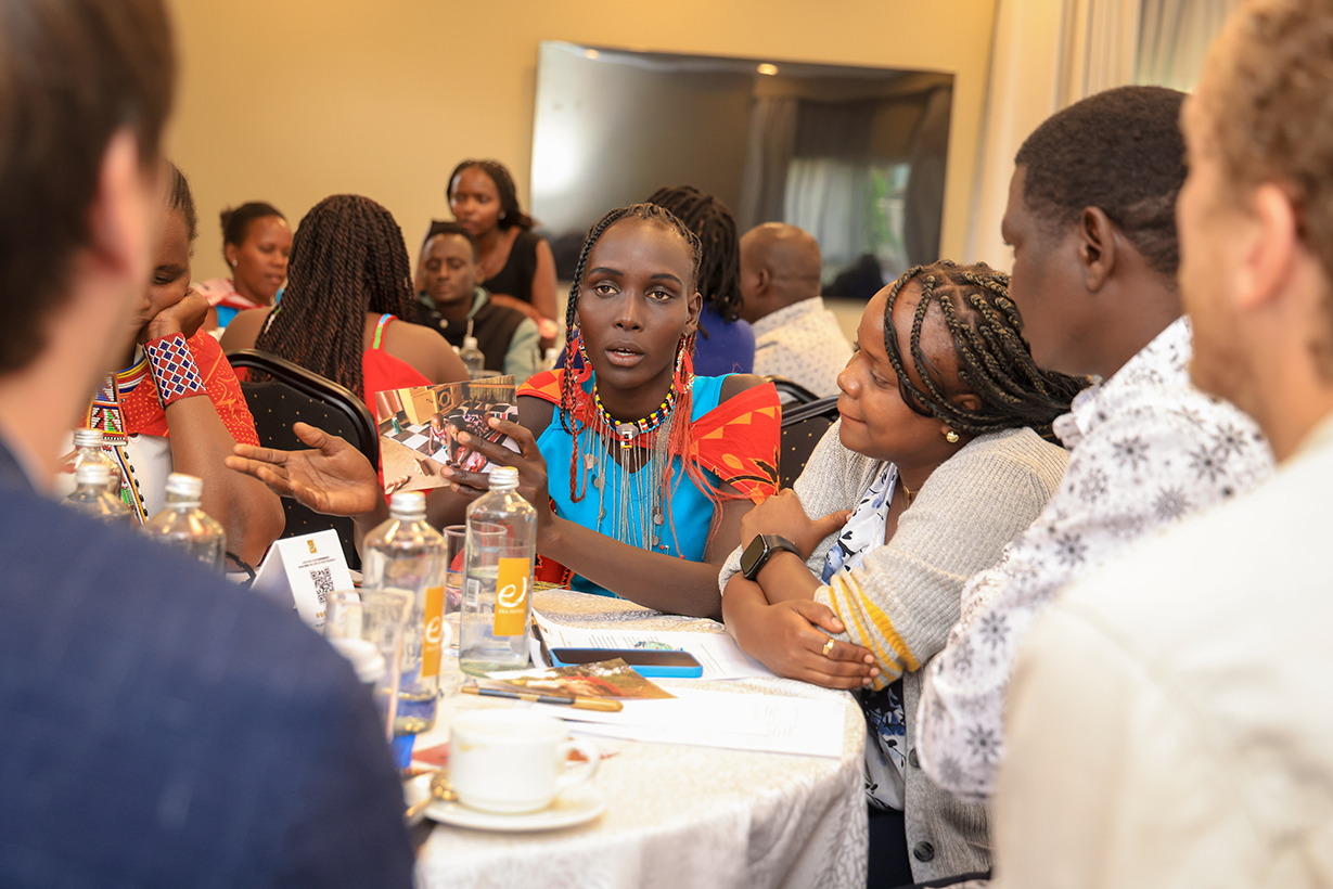 Participants at the policy dialogue discuss with trainees on how the insights from their stories can strengthen Kenya’s NAP process. (Credit: Leyian Mark Photography)
