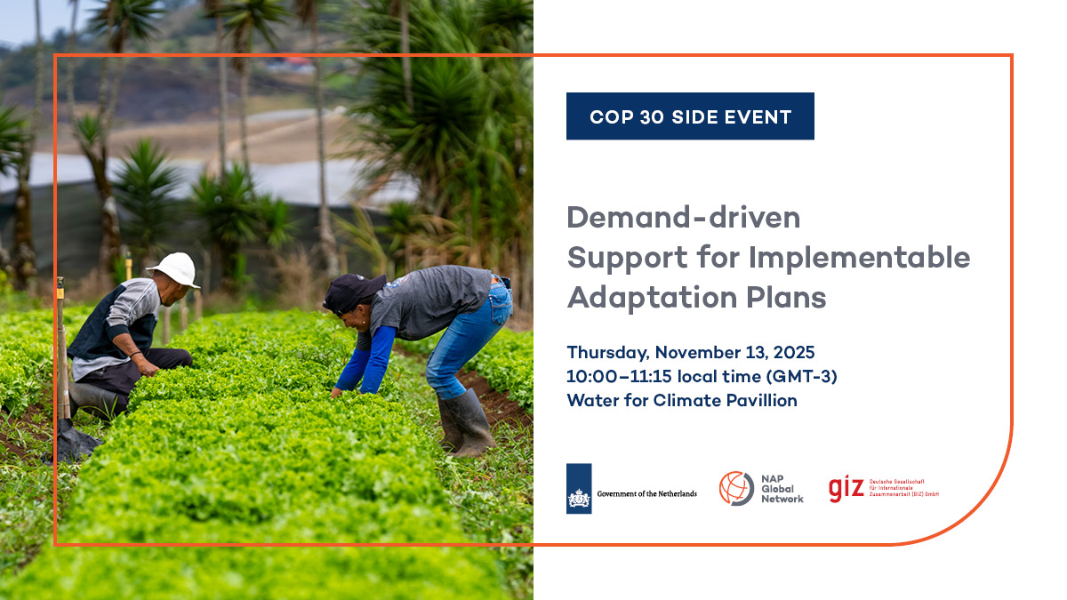 The NAP Global Network Secretariat team will co-host sessions in Belém with partner countries and organizations from the adaptation community, exchange insights and lessons on how to achieve effective and inclusive NAP processes, showcase the outcomes of the Network’s support to over 90 countries since 2014, and connect with partners and funders.
