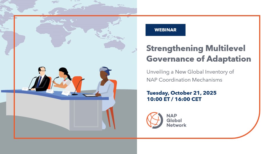 This webinar will focus on showcasing the different types of mechanisms that countries are putting into place to support adaptation, based on a recent global Inventory of Multilevel Governance Coordination Mechanisms in NAP processes.